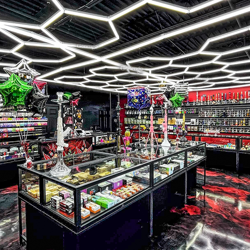 Lighting can influence how people feel and interact in a space. Hexagon LED lights for workshop lighting design with dynamic color settings or motion sensors can make your smoke shop more engaging for visitors. Imagine a display wall that changes colors as customers approach, or ceiling lights that shift hues during a music session. These interactive features create a fun, memorable experience that encourages customers to linger longer and return more often.